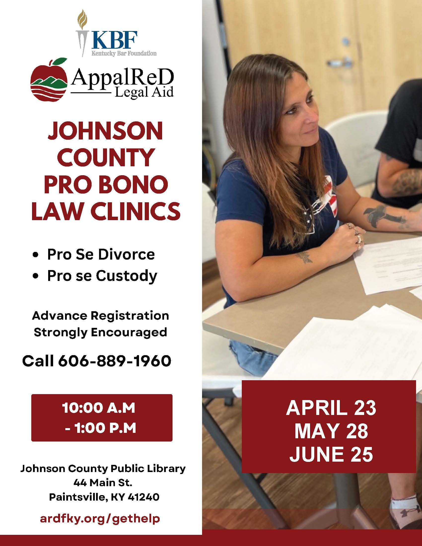AppalReD Legal Aid's Pro Bono Team will be at the Johnson County Library EVERY 4th Thursday, starting January 22.